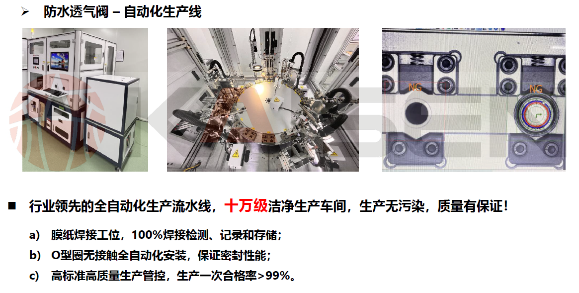 上海凯森环保是一家专注于核心过滤技术和产品研发的公司,致力于提供新能源汽车控制系统和三电系统的防护解决方案,包括防水透气、压力平衡、凝露问题、油气分离等,业务覆盖防水透气膜、防水透气阀、防水滤油透气阀等产品的研发、生产和销售。